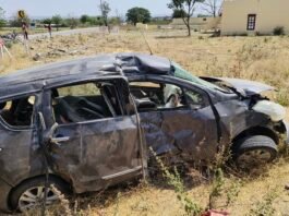 जामखेड कर्जत रोडवर विद्यार्थ्यांचे चारचाकी वाहन पल्टी, आठ जण जखमी