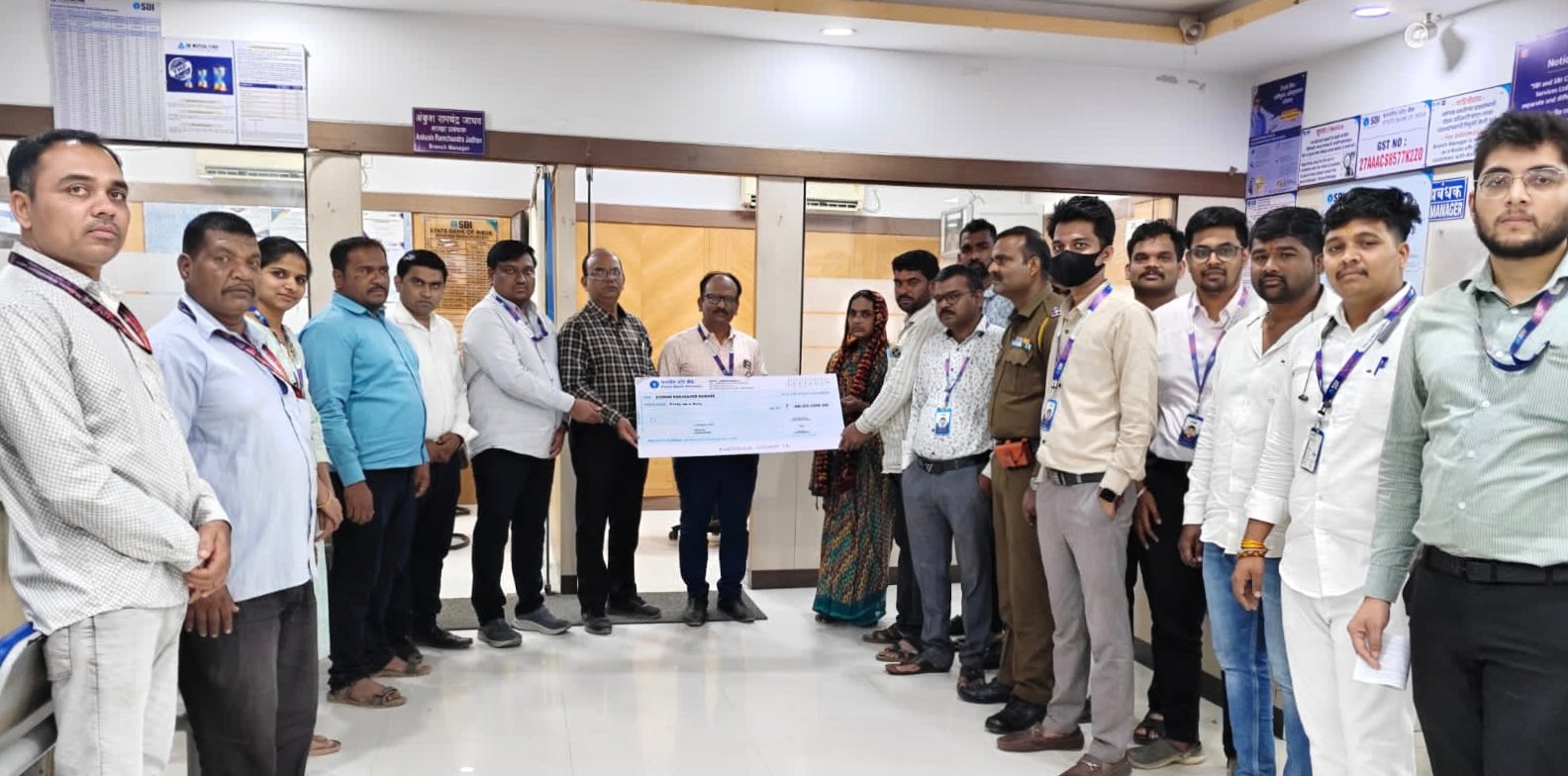 अपघाती मृत्यूच्या नोंदी, पंचनामा, वारस दाखला आदी सर्व आवश्यक कागदपत्रांची पूर्तता करून विमा दावा प्रस्ताव तयार करण्यात आला. शाखा पातळीवरून वरिष्ठ कार्यालयाशी सातत्यपूर्ण समन्वय साधत या प्रकरणाचा पाठपुरावा करण्यात आला. परिणामी, अवघ्या काही महिन्यांत विमा दावा मंजूर होऊन झुंबरताई शिकारे यांना तब्बल ४० लाख रुपयांचा विमा धनादेश मिळाला.