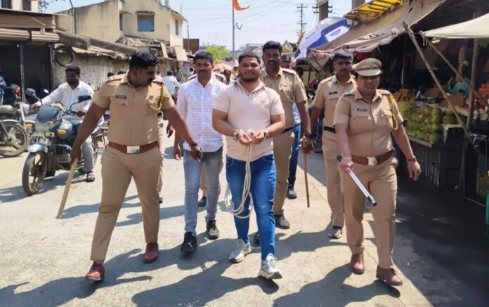 गोळीबारातील गुंड अक्षय उर्फ चिंग्या मोरे याची पोलिसांनी काढली जामखेड शहरातुन धिंड!