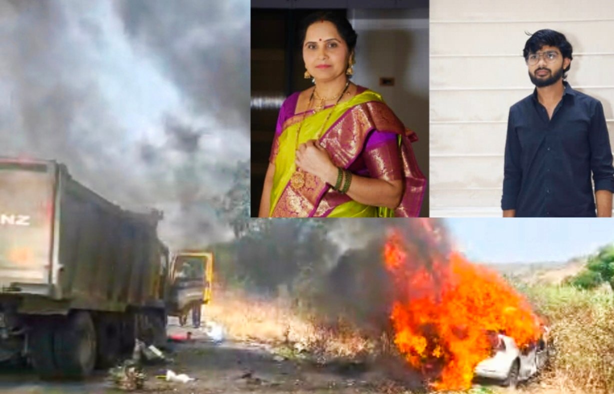 बीड-अहिल्यानगर राज्य महामार्गावर कापशी गावाजवळ एक अत्यंत भीषण आणि हृदयद्रावक अपघात घडला आहे. खडीने भरलेल्या भरधाव हायवाने कारला समोरासमोर जोरदार धडक दिली. ही धडक इतकी भीषण होती की, कारने तत्काळ पेट घेतला. कारचे दरवाजे लॉक झाल्याने बाहेर पडता न आल्यामुळे कारमधील माय-लेकाचा आतच होरपळून जागीच मृत्यू झाला.