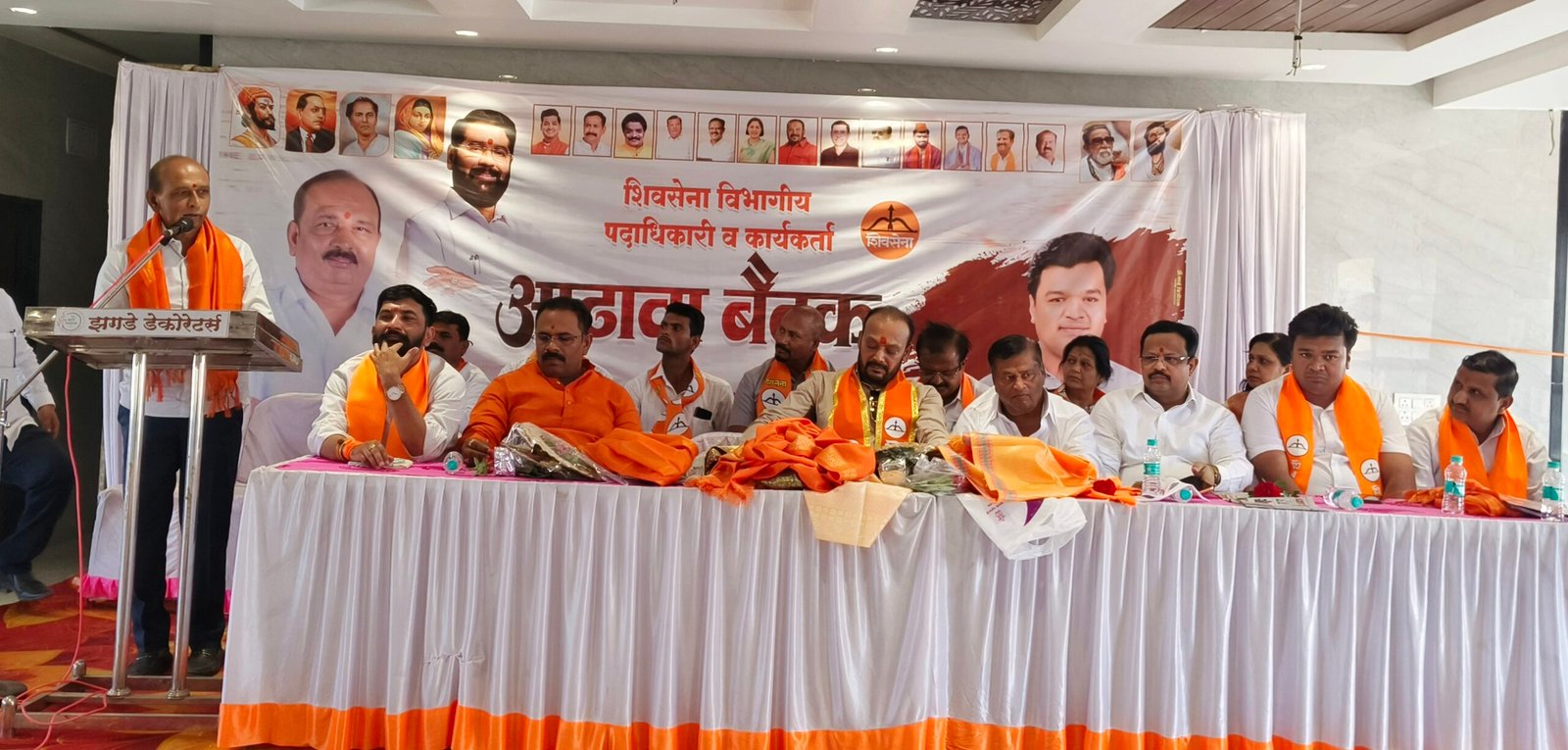 जामखेड शहरात गुरवार दि ९ एप्रिल रोजी शिवसेना विभागीय पदाधिकारी व कार्यकर्ता मेळावा संपन्न झाला. यावेळी रेपाळे बोलत होते. पुढे बोलताना रेपाळे म्हणाले की महाराष्ट्रात एकनाथ शिंदे यांनी सर्वात जास्त जनकल्याण योजना आणल्या आहेत. मुख्यमंत्री असताना महीलांसाठी लाडकी बहीण योजना बरोबरच महिलांच्या हितासाठी आनेक योजना आनल्या. शिवसेनेत काम करित असताना ऐंशी टक्के समाजकारण आणि वीस टक्के राजकारण करा. तळागाळातील लोकांपर्यंत काम करणारे मुख्यमंत्री फक्त एकनाथ शिंदे होते. कर्जत जामखेड वर भगवा फडकवल्या शिवाय रहाणार नाही. सर्व सामन्य कार्यकर्त्यांना राजकारणात पुढे घेऊन जाण्याचे काम फक्त शिवसेनाच करते. कर्जत जामखेड मध्ये पंचायत समितीचा सभापती हा शिवसेनेचा असला पाहिजे, शिवसेनेत गटबाजी चालत नाहीत, जनतेसाठी काम करणारा शिवसैनिक पाहीजे, गाव तीथे शिवसेनेची शाखा उभारा, कार्यकर्त्यांनो काम करा आपली सत्ता आहे. चांगले काम केले तर पुन्हा एकनाथ शिंदे हे मुख्यमंत्री झाल्या शिवाय रहाणार नाहीत. तसेच अहिल्यानगर जिल्ह्यात या पुढचे खासदार व आमदार शिवसेनेचे निवडुन अणायचे आहेत.