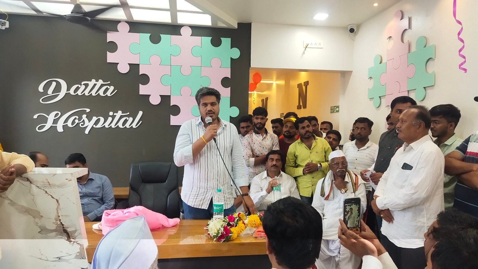 या नंतर हॉस्पिटल चे संचालक डॉ मनोज शिंदे यांनी हॉस्पिटल बाबत माहिती देताना सांगितले की साडेतीन वर्षांपासून दत्त बालरुग्नालयाची सुरूवात केली आहे. अत्तापर्यंन्त सहा हजार बालकांवर उपचार केले आहेत तर अडीच हजार नवजात बालकलाकांवर देखील उपचार केले आहेत. तसेच बालकांच्या सर्व अजारांवर उपचार केले आहेत पेशंट व नातेवाईक यांची आरोग्य बाबत हेंडसाळ होणार नाही याची आम्ही काळजी घेऊ असे आश्वासन डॉ शिंदे यांनी दिले. या नंतर डॉ भास्कर मोरे, दत्तात्रय वारे, राजेंद्र कोठारी यांनी देखील आपले मनोगत व्यक्त केले.